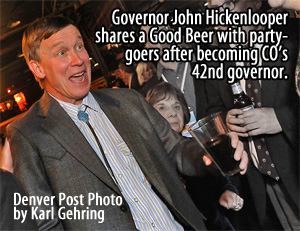 John Hickenlooper, former geologist, former brewer, former Mayor of Denver, is now Governor of Colorado.